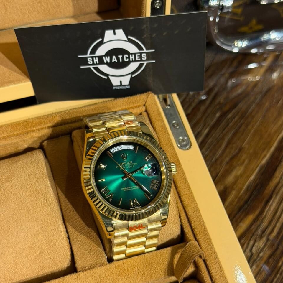The Rolex Day-Date is one of the most prestigious timepieces in the Rolex collection. Introduced in 1956, the Day-Date was the first wristwatch to display the full day of the week alongside the date, a feature that has made it a symbol of leadership, achievement, and luxury.